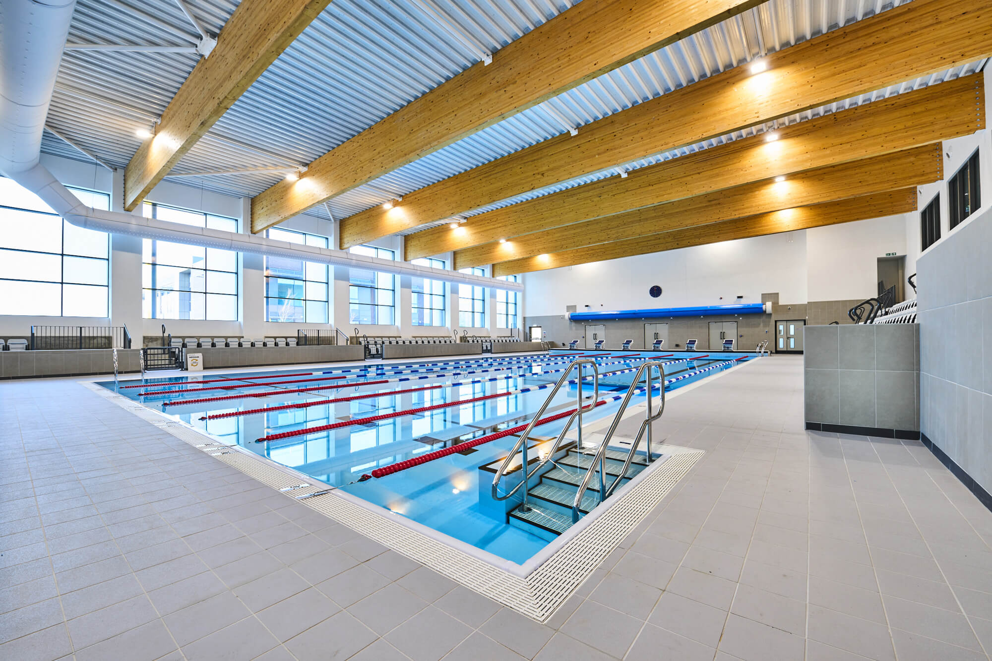 The pool design incorporates an innovative Myrtha steel-frame system, reducing greenhouse gas emissions by 45% and offering superior longevity and resistance to chemicals. Despite challenges including contaminated ground, high water tables, and COVID-related delays, the project was delivered successfully through proactive collaboration, value engineering, and a strong commitment to sustainable, practical design that will serve the community for decades to come.
