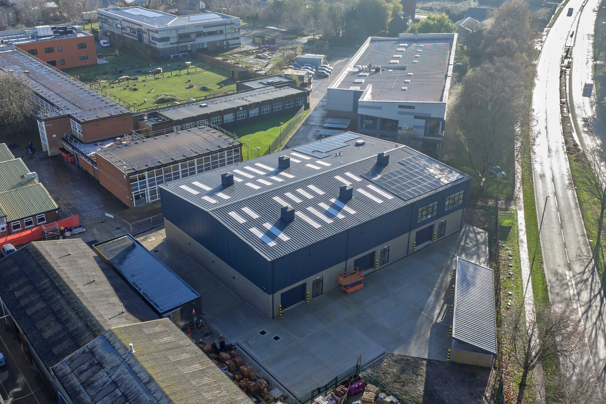 Some of the space is double height, allowing for retrofitting of energy efficiency and renewable energy installations on buildings, including the solar panels on roofs. The space will also be used for educational training to fly drones which can be used for building surveying and thermal imagining.
