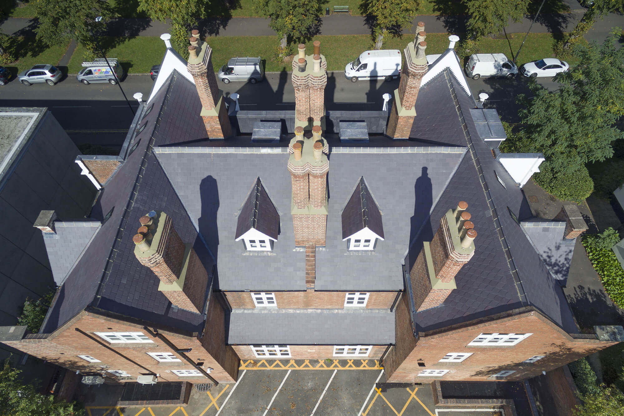 Working closely with the local Conservation Officer, we successfully secured Listed Building Consent for the proposed works. Externally, the main façade was carefully repaired and redecorated, including restoration of the stucco finish and reinstatement of the decorative frieze at high level. Brickwork repairs were carried out to the chimneys and to the side and rear elevations where required, while new windows and roof coverings were installed to ensure the building was fully weatherproof.